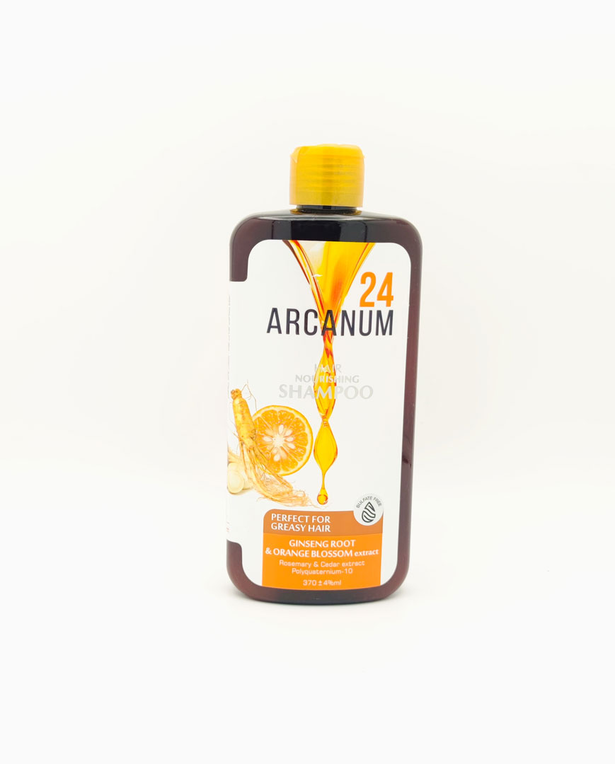 شامپو فاقد سولفات 24 آرکانوم حاوی عصاره جینسینگ و نارنج 370 میلی لیتر | تقویت و لطافت مو بدون آسیب